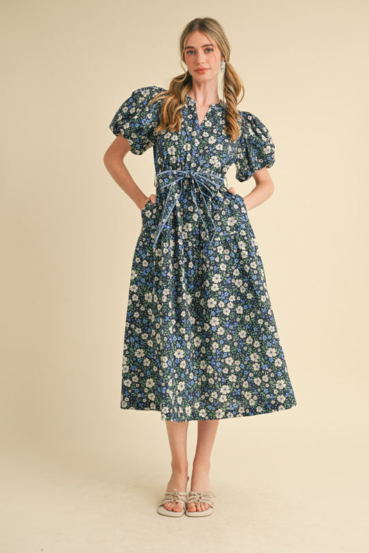 Lavena Floral Balloon Sleeve Midi Dress