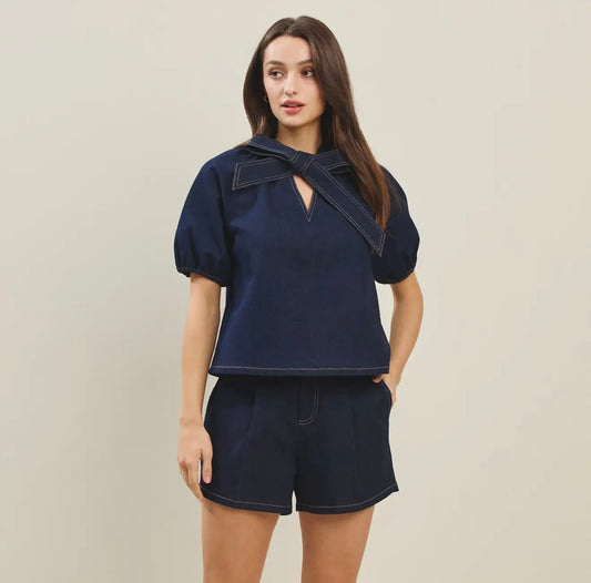 Dark Denim Bow Blouse