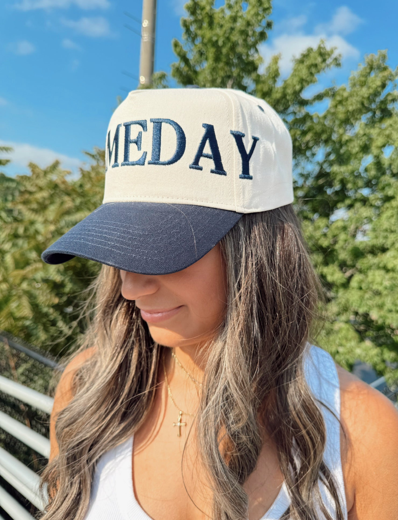 GAMEDAY - This fun vintage wrap around hat design wraps around the whole brim and comes in three colors: black, red, and navy!