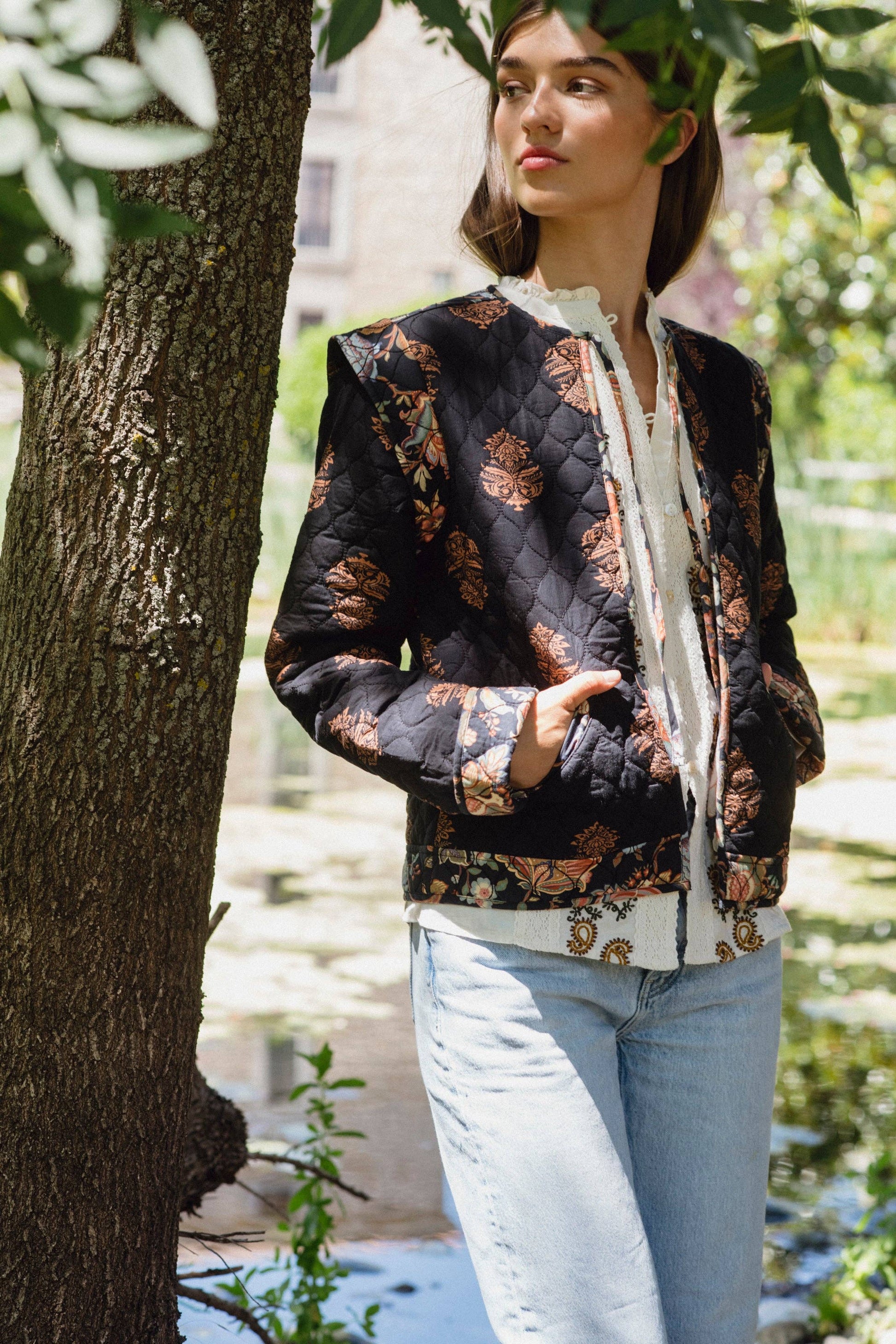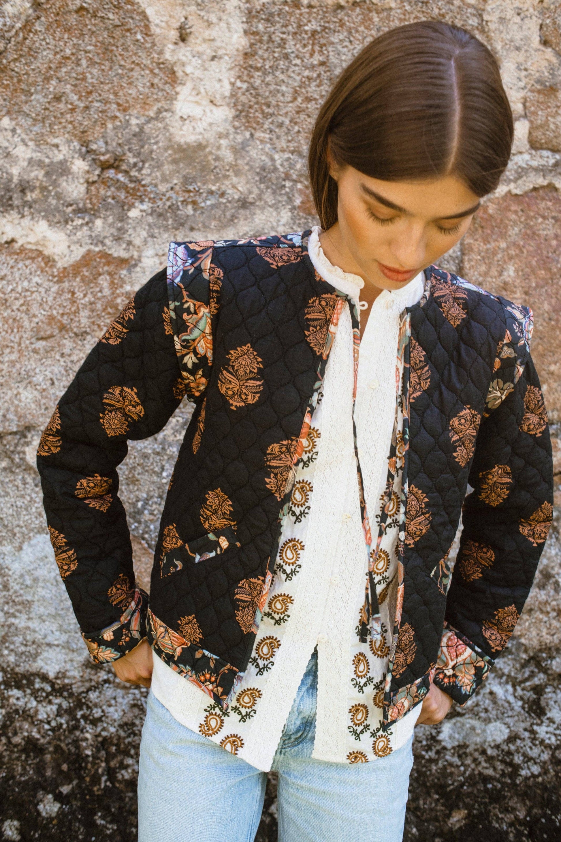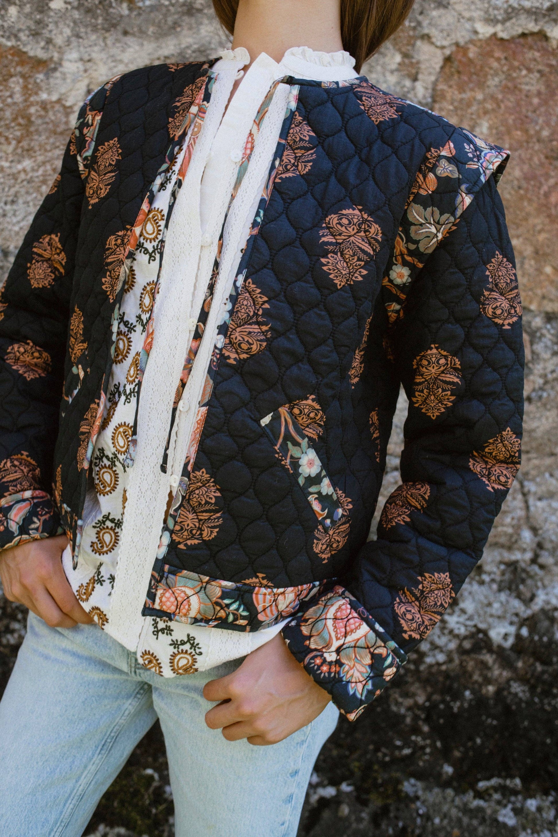 Quilted Block Print Jacket