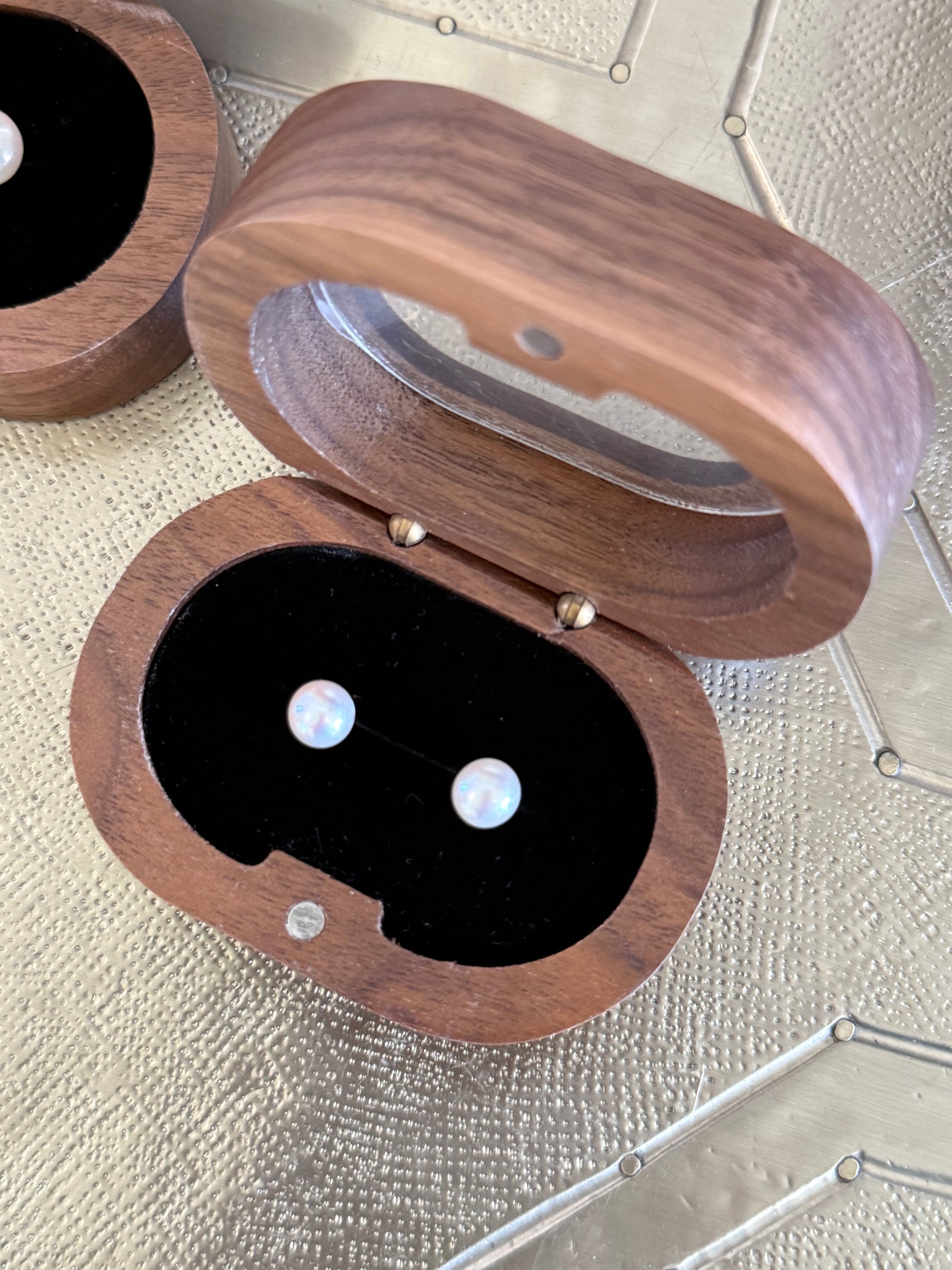 Classic elegance meets natural beauty in these luminous freshwater pearl earrings. Each perfectly round pearl is hand-selected for its radiant luster and smooth surface, reflecting soft iridescent hues with every turn of the head. Set in minimalist sterling silver posts to let the pearls take center stage, they’re presented in a luxe walnut wood box with a velvet-lined interior — making them as much a joy to gift as to wear. Whether paired with a crisp white blouse or an evening gown, these pearls are the epitome of understated sophistication.