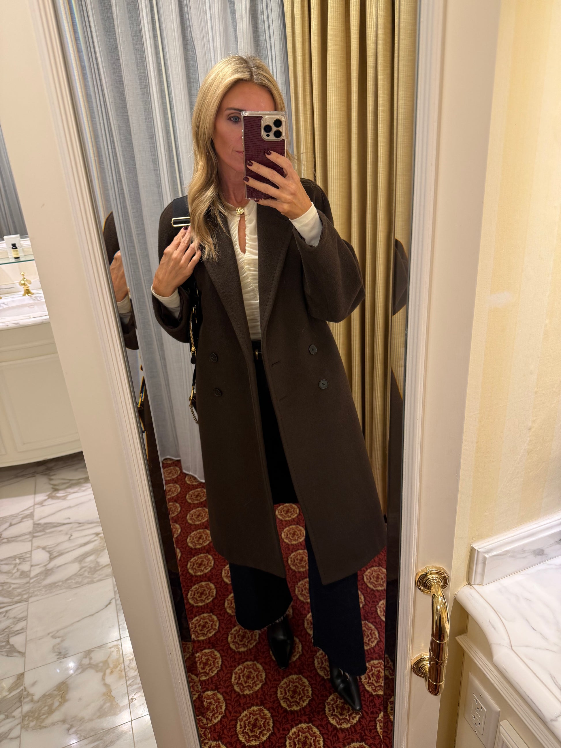 Elevate your essentials with this flattering ruched, long sleeve top. A subtle clasp detail completes the neckline with a refined touch, making it the perfect top for your next business meeting, night out with friends or casual weekend errands.